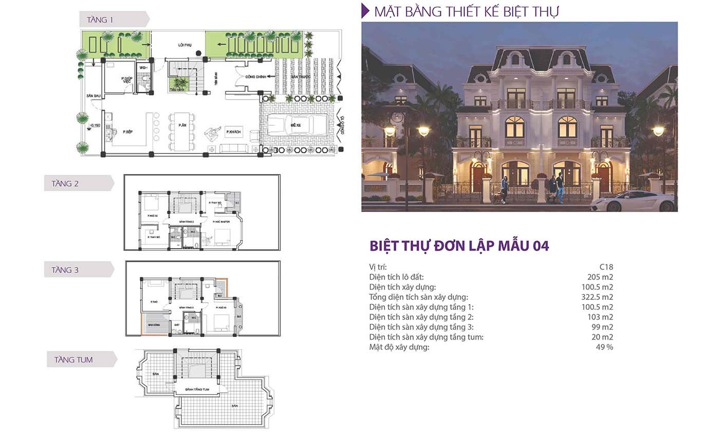 Ở giai đoạn 3 dự án với phần lớn là diện tích 200m2 và 400m2 thì chúng ta có được 6 mẫu thiết kế điển hình như dưới đây